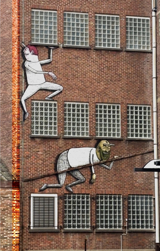 op de buitenmuur van de gevangenis staat dit prachtig werk