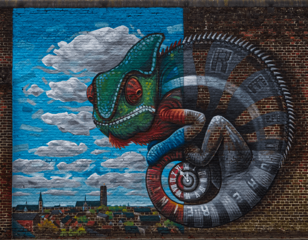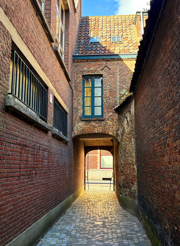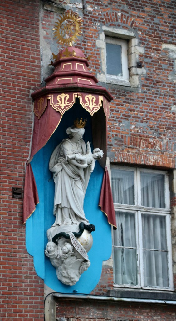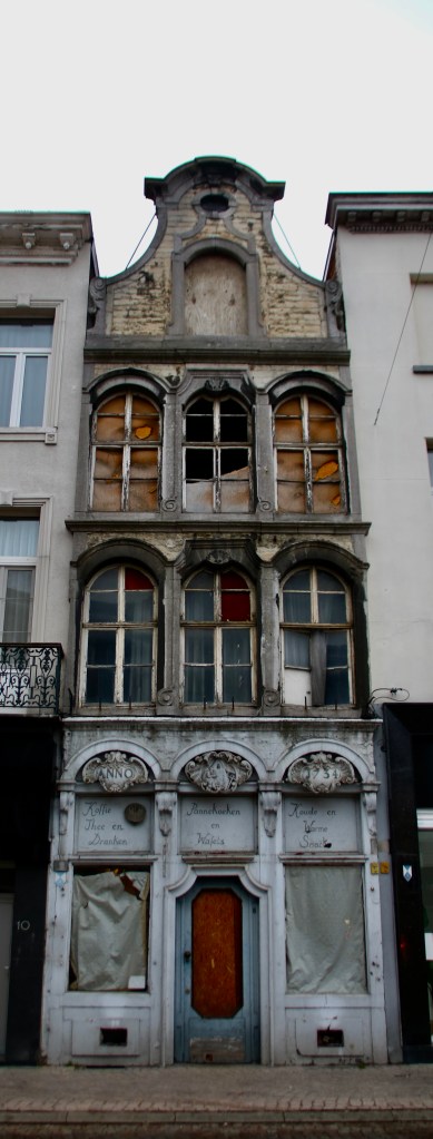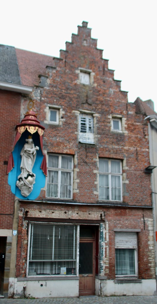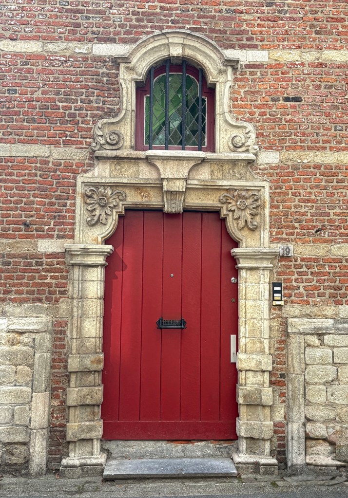 In de O.L.Vrouwstraat in Mechelen staat het “oude pand de groene hond” maar met de jaren is hij rood geworden :,)
